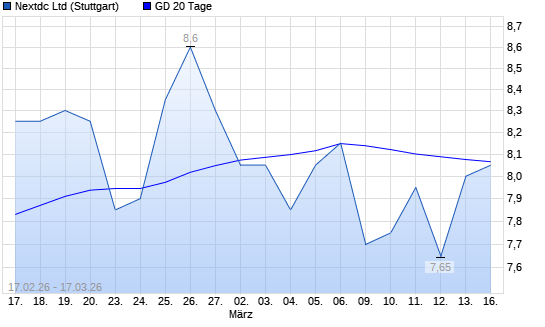 Mit dem Anstieg auf 7,95 EUR hat die NEXTDC-Aktie am 16.03.2026 die 20-Tage-Linie nach oben gekreuzt.