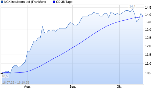 Mit dem Anstieg auf 14,10 EUR hat die NGK Insulators-Aktie am 15.10.2025 die 38-Tage-Linie nach oben gekreuzt.