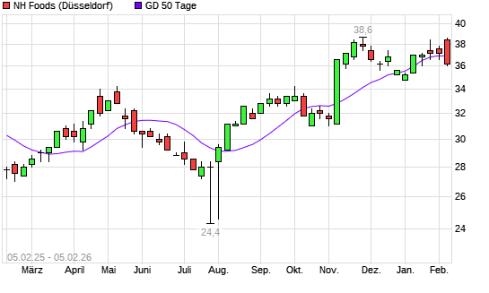 Mit dem Rücksetzer auf 36,40 EUR hat die NH Foods-Aktie am 04.02.2026 die 50-Tage-Linie nach unten gekreuzt.