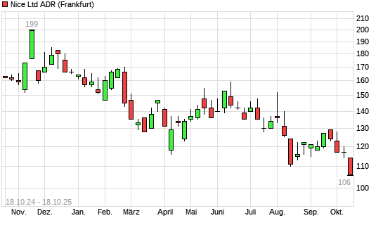 Mit dem Rücksetzer auf 106,00 EUR hat die NICE Systems Limited-Aktie (ISIN US6536561086) am 17.10.2025 ein neues 5-Jahres-Tief erreicht und damit den Kurs vom 16.10.2025 eingestellt.