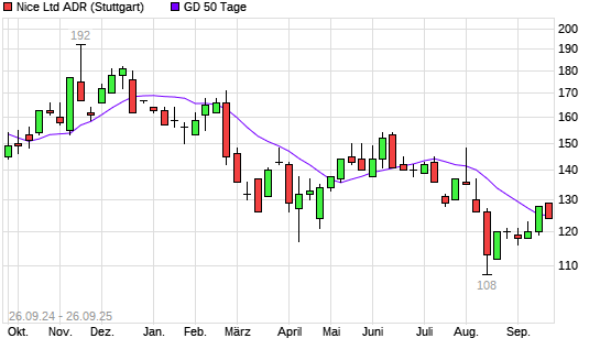 Mit dem Anstieg auf 128,00 EUR hat die NICE Systems Limited-Aktie am 25.09.2025 die 50-Tage-Linie nach oben gekreuzt.