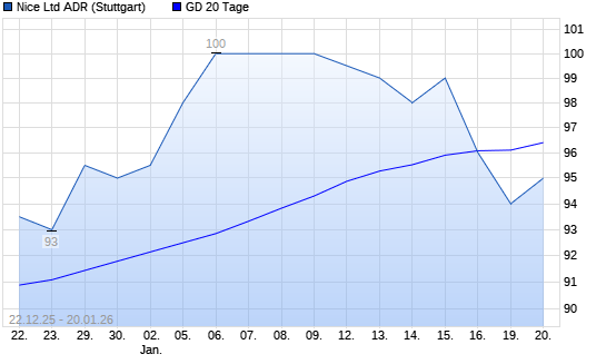 Mit dem Rücksetzer auf 93,50 EUR hat die NICE Systems Limited-Aktie am 19.01.2026 die 20-Tage-Linie nach unten gekreuzt.