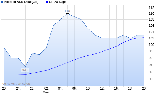 Mit dem Rücksetzer auf 100,00 EUR hat die NICE Systems Limited-Aktie am 19.03.2026 die 20-Tage-Linie nach unten gekreuzt.