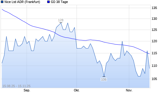 Mit dem Rücksetzer auf 109,00 EUR hat die NICE Systems Limited-Aktie am 14.11.2025 die 38-Tage-Linie nach unten gekreuzt.