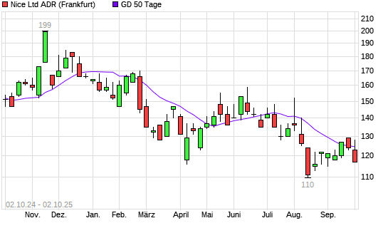Mit dem Rücksetzer auf 117,00 EUR hat die NICE Systems Limited-Aktie am 01.10.2025 die 50-Tage-Linie nach unten gekreuzt.