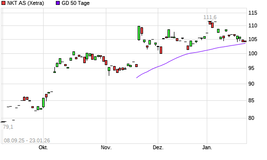 Mit dem Anstieg auf 106,10 EUR hat die NKT AS-Aktie am 22.01.2026 die 50-Tage-Linie nach oben gekreuzt.