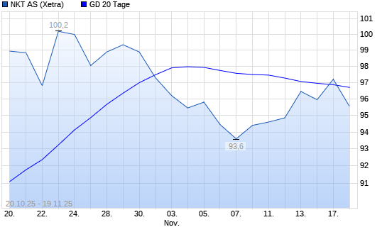 Mit dem Rücksetzer auf 95,00 EUR hat die NKT AS-Aktie am 18.11.2025 die 20-Tage-Linie nach unten gekreuzt.