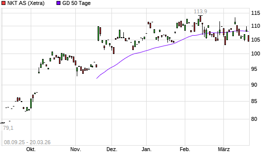 Mit dem Rücksetzer auf 105,90 EUR hat die NKT AS-Aktie am 19.03.2026 die 50-Tage-Linie nach unten gekreuzt.