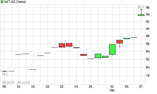Mit dem Anstieg auf 95,25 EUR hat die NKT Holding-Aktie (ISIN DK0010287663) am 07.10.2025 ein neues All-Time-High erreicht und damit den Kurs vom 19.09.2024 eingestellt.Die NKT Holding-Aktie ...weiterlesen