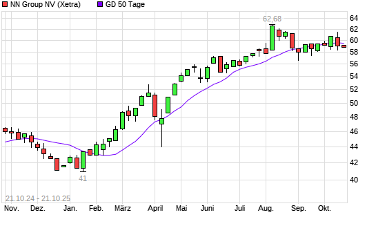 Mit dem Anstieg auf 59,20 EUR hat die NN Group-Aktie am 20.10.2025 die 50-Tage-Linie nach oben gekreuzt.