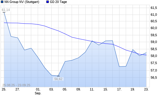 Mit dem Rücksetzer auf 58,02 EUR hat die NN Group-Aktie am 22.09.2025 die 20-Tage-Linie nach unten gekreuzt.
