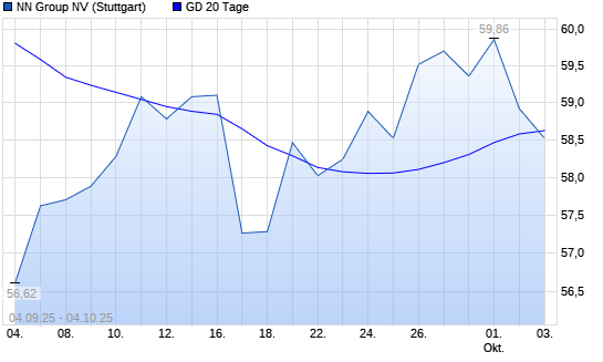 Mit dem Rücksetzer auf 58,52 EUR hat die NN Group-Aktie am 03.10.2025 die 20-Tage-Linie nach unten gekreuzt.