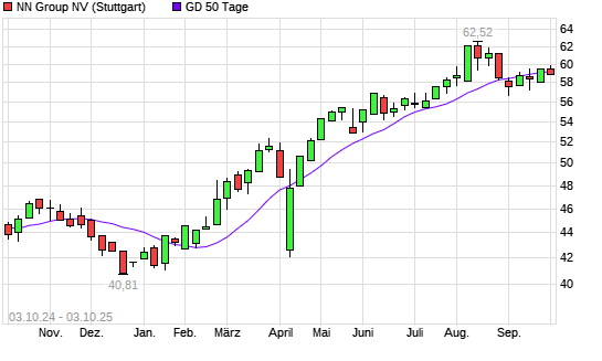 Mit dem Rücksetzer auf 58,92 EUR hat die NN Group-Aktie am 02.10.2025 die 50-Tage-Linie nach unten gekreuzt.Die NN Group-Aktie befindet sich seit dem 07.02.2025 im langfristigen Aufwärtstrend ...weiterlesen