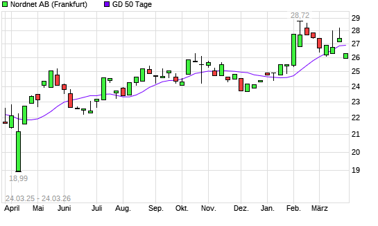Mit dem Rücksetzer auf 25,94 EUR hat die NORDNET AB (PUBL)-Aktie am 23.03.2026 die 50-Tage-Linie nach unten gekreuzt.