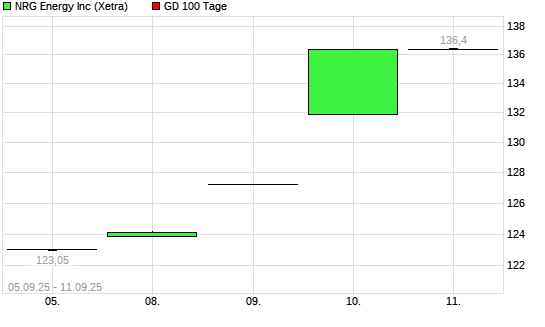 Mit dem Anstieg auf 138,00 EUR hat die NRG Energy-Aktie am 10.09.2025 die 100-Tage-Linie nach oben gekreuzt.
