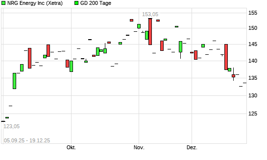 Mit dem Rücksetzer auf 125,35 EUR hat die NRG Energy-Aktie am 18.12.2025 die 200-Tage-Linie nach unten gekreuzt.