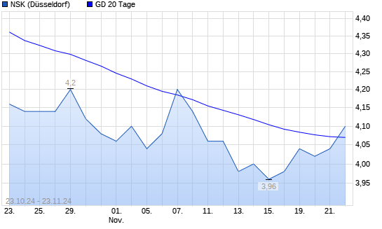 Mit dem Anstieg auf 4,10 EUR hat die NSK-Aktie am 22.11.2024 die 20-Tage-Linie nach oben gekreuzt.