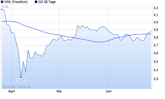 Mit dem Anstieg auf 3,86 EUR hat die NSK-Aktie am 25.06.2025 die 38-Tage-Linie nach oben gekreuzt.