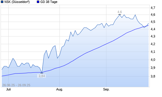 Mit dem Anstieg auf 4,48 EUR hat die NSK-Aktie am 25.09.2025 die 38-Tage-Linie nach oben gekreuzt.