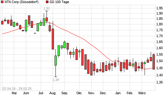 Mit dem Rücksetzer auf 1,45 EUR hat die NTN Corporation-Aktie am 28.03.2025 die 100-Tage-Linie nach unten gekreuzt.