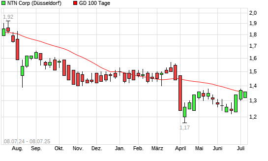 Mit dem Rücksetzer auf 1,35 EUR hat die NTN Corporation-Aktie am 07.07.2025 die 100-Tage-Linie nach unten gekreuzt.