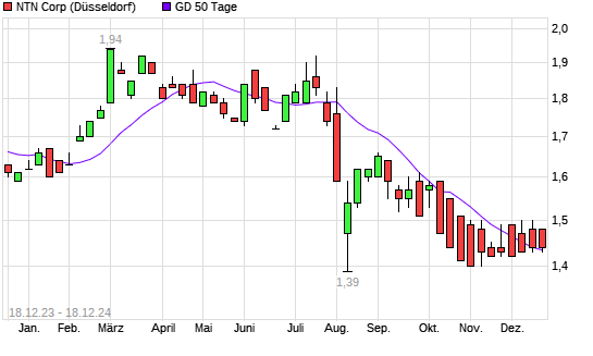 Mit dem Rücksetzer auf 1,44 EUR hat die NTN Corporation-Aktie am 17.12.2024 die 50-Tage-Linie nach unten gekreuzt.