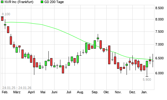 Mit dem Rücksetzer auf 6.400,00 EUR hat die NVR-Aktie am 23.01.2026 die 200-Tage-Linie nach unten gekreuzt.Die NVR-Aktie befand sich seit dem 21.01.2026 im langfristigen Aufwärtstrend und ...weiterlesen