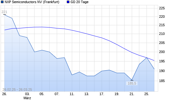 Mit dem Anstieg auf 197,00 EUR hat die NXP Semiconductors-Aktie am 25.03.2025 die 20-Tage-Linie nach oben gekreuzt.