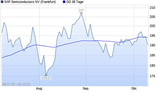 Mit dem Anstieg auf 194,50 EUR hat die NXP Semiconductors-Aktie am 08.10.2025 die 38-Tage-Linie nach oben gekreuzt.