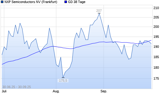 Mit dem Rücksetzer auf 192,50 EUR hat die NXP Semiconductors-Aktie am 29.09.2025 die 38-Tage-Linie nach unten gekreuzt.