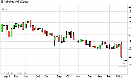 Mit dem Rücksetzer auf 10,50 EUR hat die Nabaltec-Aktie (ISIN DE000A0KPPR7) am 16.03.2026 ein neues 10-Jahres-Tief erreicht und damit den Kurs vom 12.03.2026 eingestellt.