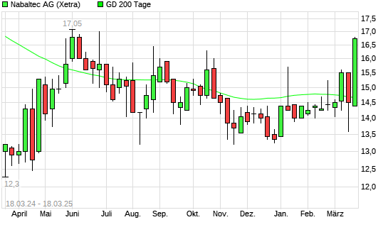 Mit dem Anstieg auf 15,80 EUR hat die Nabaltec-Aktie am 17.03.2025 die 200-Tage-Linie nach oben gekreuzt.