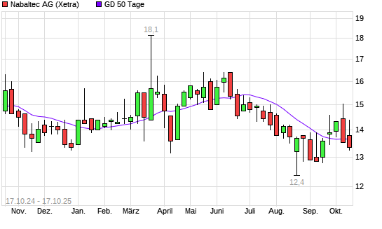 Mit dem Rücksetzer auf 13,35 EUR hat die Nabaltec-Aktie am 16.10.2025 die 50-Tage-Linie nach unten gekreuzt.