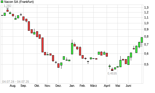 Mit dem Anstieg auf 0,75 EUR hat die Nacon-Aktie (ISIN FR0013482791) am 03.07.2025 ein neues 6-Monats-Hoch erreicht und damit den Kurs vom 02.07.2025 eingestellt.