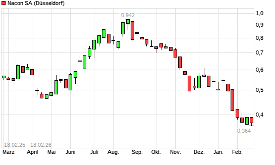 Mit dem Rücksetzer auf 0,35 EUR hat die Nacon-Aktie (ISIN FR0013482791) am 17.02.2026 ein neues All-Time-Low erreicht und damit den Kurs vom 05.02.2026 eingestellt.