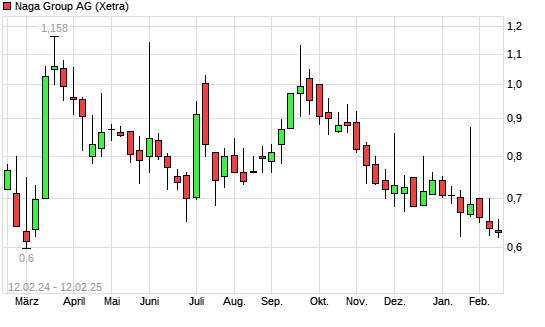 Mit dem Rücksetzer auf 0,60 EUR hat die Naga Group-Aktie (ISIN DE000A161NR7) am 11.02.2025 ein neues 5-Jahres-Tief erreicht und damit den Kurs vom 07.02.2025 eingestellt.