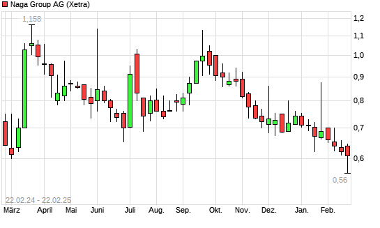 Mit dem Rücksetzer auf 0,59 EUR hat die Naga Group-Aktie (ISIN DE000A161NR7) am 21.02.2025 ein neues 5-Jahres-Tief erreicht und damit den Kurs vom 11.02.2025 eingestellt.