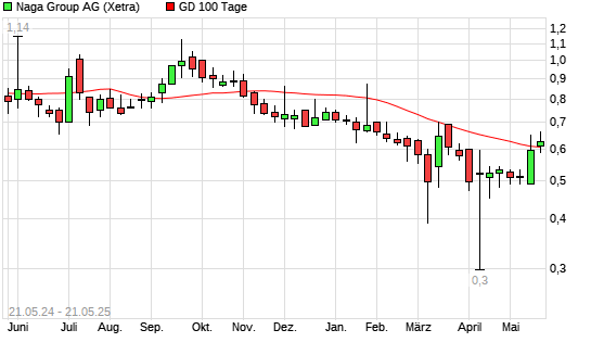 Mit dem Anstieg auf 0,58 EUR hat die Naga Group-Aktie am 20.05.2025 die 100-Tage-Linie nach oben gekreuzt.