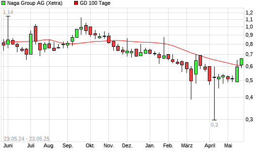 Mit dem Anstieg auf 0,60 EUR hat die Naga Group-Aktie am 22.05.2025 die 100-Tage-Linie nach oben gekreuzt.