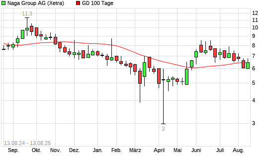 Mit dem Anstieg auf 0,61 EUR hat die Naga Group-Aktie am 12.08.2025 die 100-Tage-Linie nach oben gekreuzt.