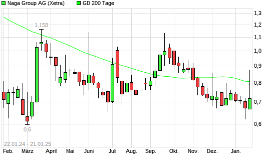 Mit dem Anstieg auf 0,80 EUR hat die Naga Group-Aktie am 20.01.2025 die 200-Tage-Linie nach oben gekreuzt.