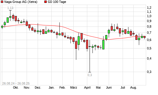 Mit dem Rücksetzer auf 0,61 EUR hat die Naga Group-Aktie am 25.08.2025 die 100-Tage-Linie nach unten gekreuzt.
