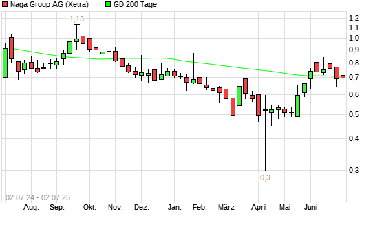 Mit dem Rücksetzer auf 0,66 EUR hat die Naga Group-Aktie am 01.07.2025 die 200-Tage-Linie nach unten gekreuzt.