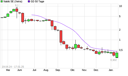 Mit dem Anstieg auf 0,49 EUR hat die Nakiki SE-Aktie am 16.01.2025 die 50-Tage-Linie nach oben gekreuzt.