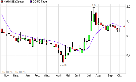 Mit dem Anstieg auf 0,76 EUR hat die Nakiki SE-Aktie am 14.10.2025 die 50-Tage-Linie nach oben gekreuzt.