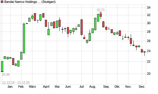 Mit dem Rücksetzer auf 23,09 EUR hat die Namco Bandai-Aktie (ISIN JP3778630008) am 10.12.2025 ein neues 6-Monats-Tief erreicht und damit den Kurs vom 09.12.2025 eingestellt.