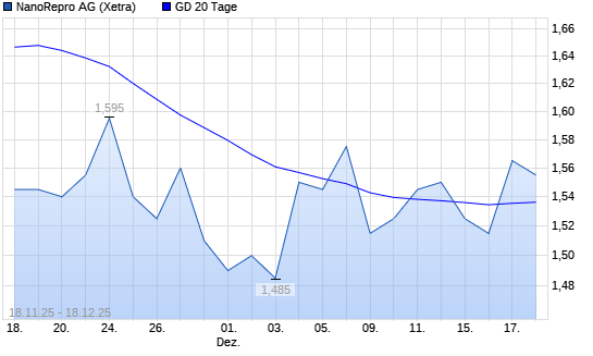 Mit dem Rücksetzer auf 1,45 EUR hat die NanoRepro-Aktie am 17.12.2025 die 20-Tage-Linie nach unten gekreuzt.