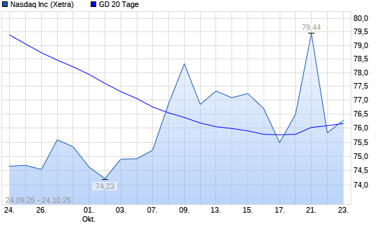 Mit dem Anstieg auf 76,34 EUR hat die Nasdaq Inc.-Aktie am 23.10.2025 die 20-Tage-Linie nach oben gekreuzt.
