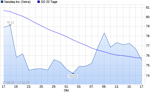 Mit dem Rücksetzer auf 75,05 EUR hat die Nasdaq Inc.-Aktie am 16.10.2025 die 20-Tage-Linie nach unten gekreuzt.