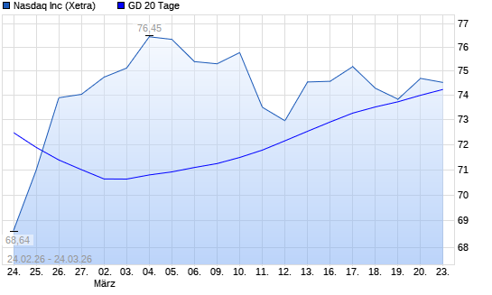 Mit dem Rücksetzer auf 74,24 EUR hat die Nasdaq Inc.-Aktie am 23.03.2026 die 20-Tage-Linie nach unten gekreuzt.